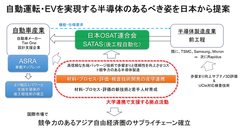 先端半導体と次世代パワー半導体は、自動運転を支えるAI制御や電動化を担うWGB半導体は省エネルギー技術の切り札であり、高品質と高信頼を特徴とする我が国の産業の強みでもある。車載半導体の品質を支えるのはパッケージング材料とプロセス、更にはその信頼性技術であり、これを日本の産業の持続的な特徴とし、AI/IoTの来たるべき社会の基本技術領域とする。