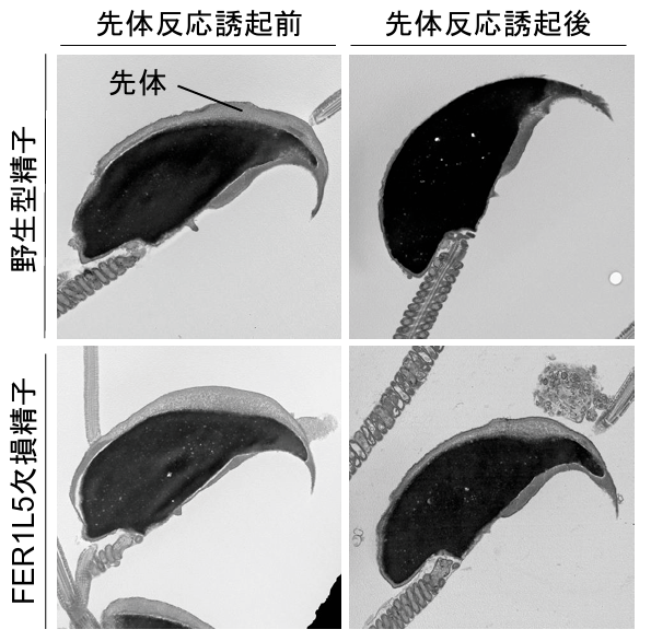 射出されたばかりの精子には受精能がなく、雌性生殖路を移行する間に先体反応と呼ばれる開口分泌を起こすことが卵子との受精に必須である。先体反応では精子頭部に存在する小胞 (先体) の膜が精子細胞膜と融合することによって先体内容物が放出されるが、その制御機構については長年不明であった。