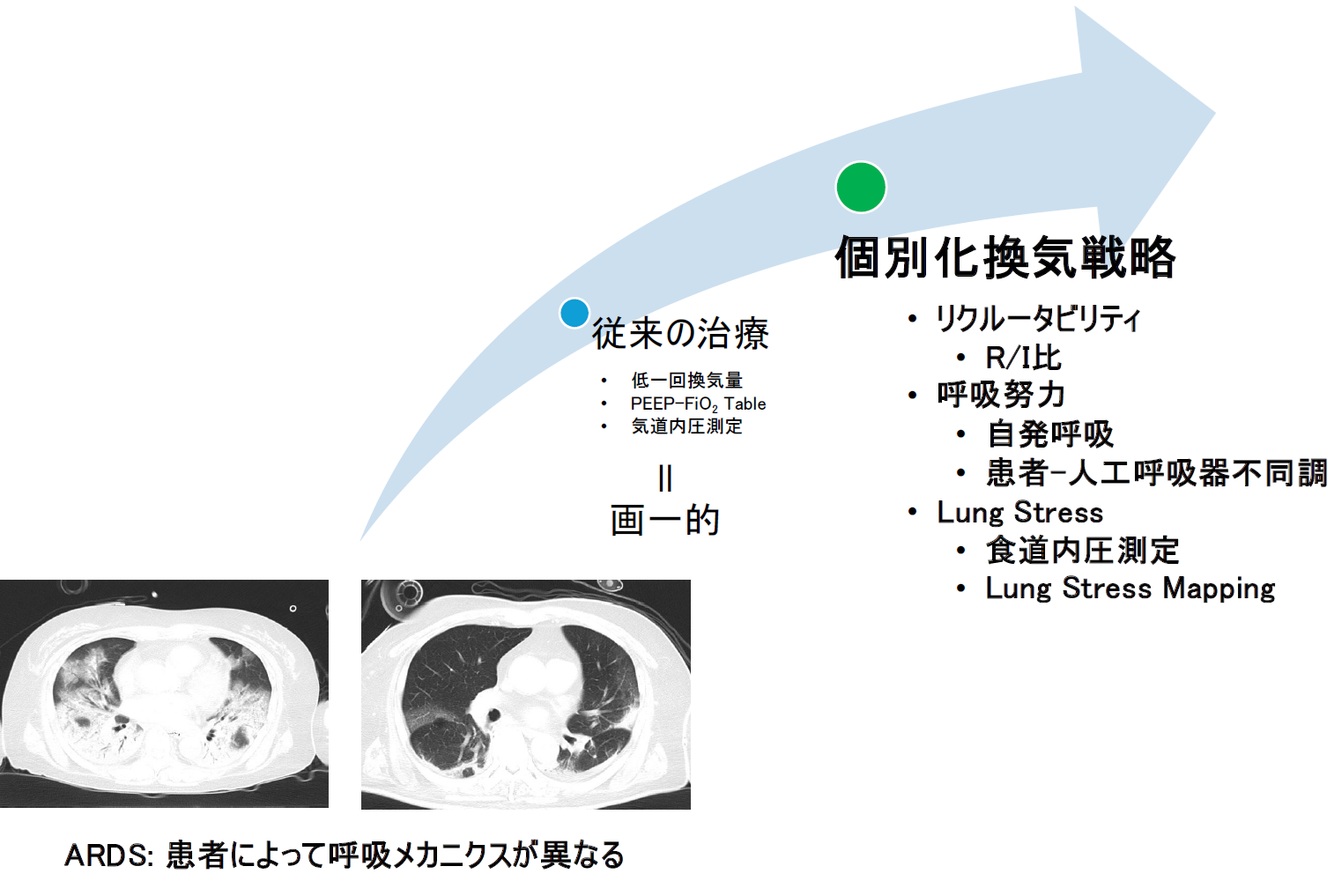 急性呼吸窮迫症候群/個別化換気戦略/肺リクルータビリティ/呼吸努力/ラングストレス